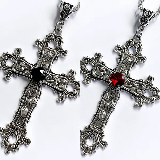 Y2K Punk Crystal Big Cross Pendant Necklaces for Women Men Gothic Irregular Cross Clavicle Chain Necklaces Aesthetic Jewelry