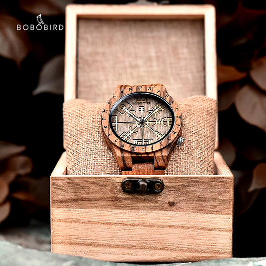 Wooden Watches Viking Symbol Element Handmade Watch Logo Customize Dropshipping