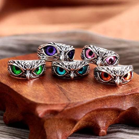 Fashion Charm Vintage Owl Ring for Men Women Cute Animals Owl Youth Gothic Rings Adjustable Colorful Cat Eye Rings Jewelry Gifts